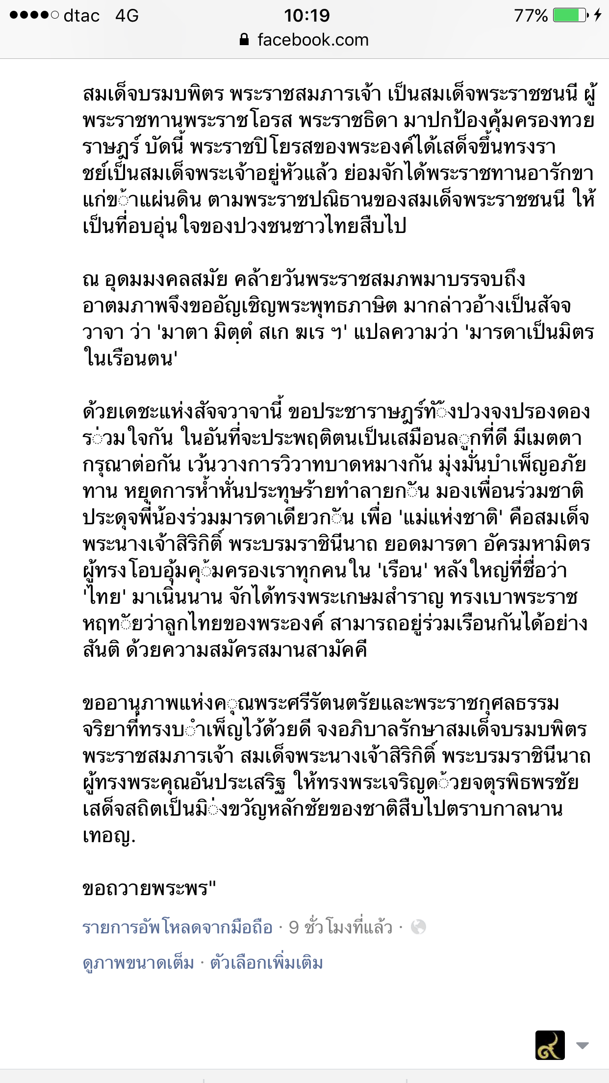 จาก facebook สำนักงานเลขานุการสมเด็จพระสังฆราช