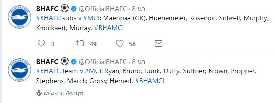 [มู้เชียร์สด] Brighton & Hove Albion F.C. เปิดบ้านรับเรือใบสีฟ้า เวลา 23:30