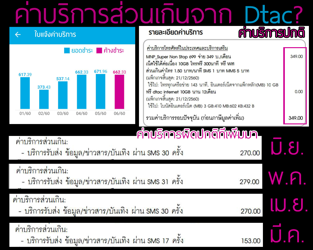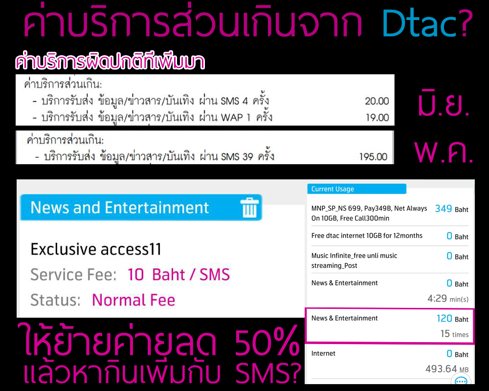 Dtac เอาอีกแล้วครับ มีค่าบริการส่วนเกินแปลกๆ เข้ามาในบิล