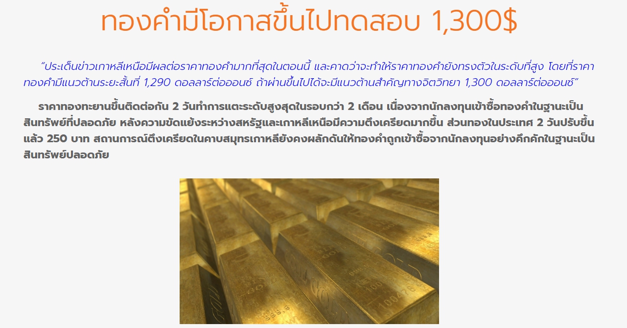 ทองคำมีโอกาสขึ้นไปทดสอบ 1,300$ (Smart Invest : Share2Trade)
