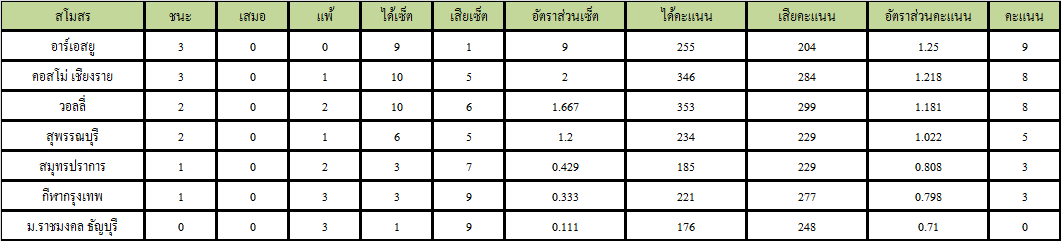 ตารางคะแนน วอลเล่ย์บอล ไทยลีก ประจำวันที่ 2 และ 3 ธันวาคม 2560