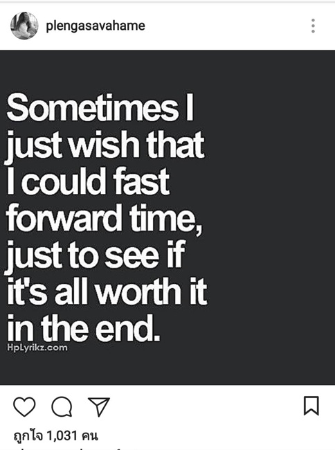 “เขาไม่ได้เสียความรู้สึกค่ะ คุยกันเข้าใจว่าลูกอาจจะต้องเปลี่ยนเรื่องนะคะ น้องเพลงก็บอกว่าไม่เป็นไรแม่ ที่เห็นว่านางโพสต์ดรามานั่นน่ะคือนางป่วย คือโฮปเป็นแมวที่น้องเพลงเก็บมาเลี้ยง แมวนางป่วยค่ะ ไม่ได้เกี่ยวกับเรื่องนี้เลยค่ะ น้องเพลงจะชอบโพสต์อะไรก็แล้วแต่ในสิ่งที่เขารัก หรือเวลาที่เขาป่วย เขาเครียด ก็จะโพสต์แบบนี้อยู่เรื่อยๆ ค่ะ (ยิ้ม)”