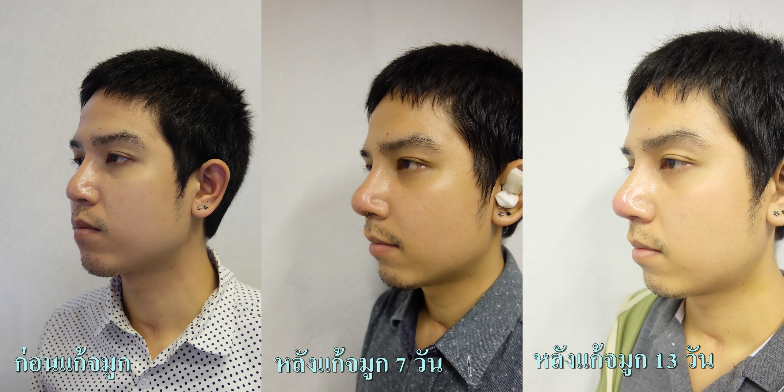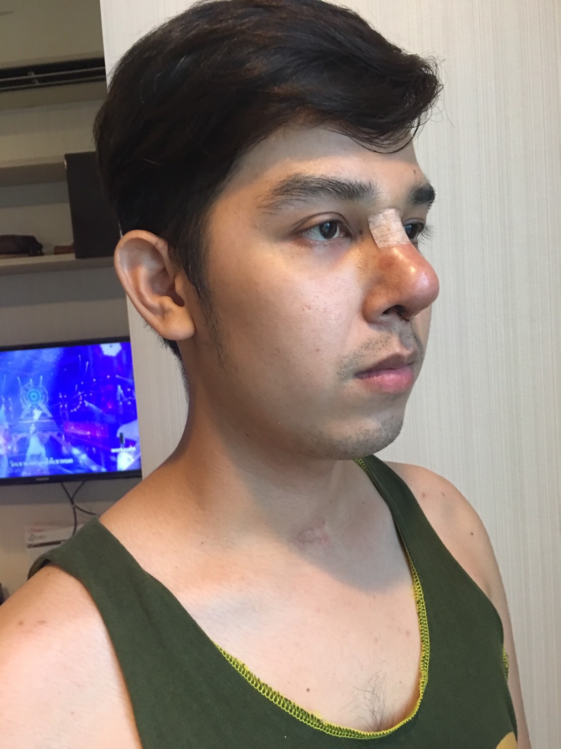 ครั้งแรกสมัยตอนเข้ามาอยู่ กทม แรก ๆ เสริมจมูกด้วยซิลิโคนอย่างเดียว ที่คลินิกแถวรัชดาภิเษก ( ใกล้ ๆ MRT ) ราคาที่ทำครั้งแรก 15,000 บาท ถ้าจำไม่ผิดนะครับ หลังจากที่ทำไปแล้ว ก็ดีครับ คิดว่าดีนะ หน้าเปลี่ยนเลย จากหน้าเด็ก ๆ ไปหน้าแก่เลย 55555 อันนี้คนรอบข้างบอกนะครับ หลังจากที่ทำครั้งแรกได้ ประมาณ 1 ปีมั้งครับ รู้สึกว่าปลายจมูกตัวเองบวมโต และแข็ง คงจะเป็นตั้งแต่ตอนแรก ๆ แล้วล่ะครับ เรื่องปลายจมูกใหญ่ แต่ตอนแรกไม่เจ็บนะครับ เลยไม่ได้สนใจอะไรมาก จนมาวันนึงปลายจมูกมันเริ่มเจ็บ ( เพราะช่วงนั้นเที่ยวบ่อย ดื่มเหล้า มันเลยเจ็บบวมขึ้นมา) คราวนี้ทำไง ก็อยากแก้สิครับ