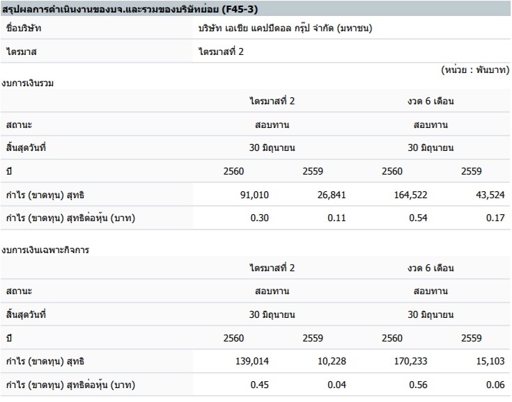 งบ ACAP ออกแล้ว กำไรโตขึ้นอย่างมีนัยสำคัญ