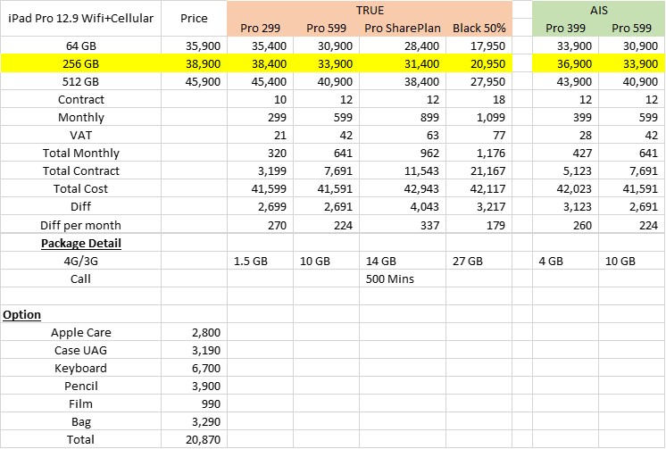 กำลังจะซื้อ iPhone 7 กับ True แต่แฟนจะเอาโปรถูกๆ 699 ว่างๆก่อนจะซื้อเลยทำตารางเทียบดูว่ามันต่างกันอย่างไรบ้างแต่ละอันได้อะไรเสียอะไร จากที่ผมนั่งทำดูก็เห็นได้ว่า True มีโปรให้เลือก 3 รายการคือ 699,89