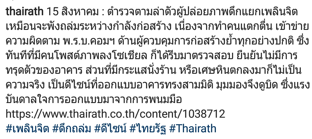 เจอแน่ทั้งจำ-ปรับ โพสต์ภาพตึกเหมือนจะพัง เข้าข่ายทำแตกตื่น