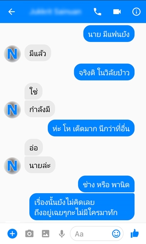 จนมาถึงช่วงนึงที่ผ่านไปไม่นานนี้ ผมก็ทักนุ่นไปเหมือนเดิม แต่คิดไงไม่รู้ อยากรู้ว่านุ่นมีแฟนยังเลยถามไป