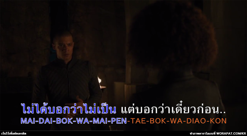 ช่วงนี้เราย้อนไปดูมาให้ตั้งแต่ ss1 ฉากที่เรายิ้มแบบขำเลย คือท้าย ss4 ฉากหน้าประตูโลหิต ที่อาร์ย่ากับคลีแกน เพิ่งรู้ว่าไลซ่าเพิ่งตาย3วันก่อนเขามาถึง เสียงหัวเราะของอาร์ย่าทำเราขำตาม เหมือนเป็นฉากซิทคอม