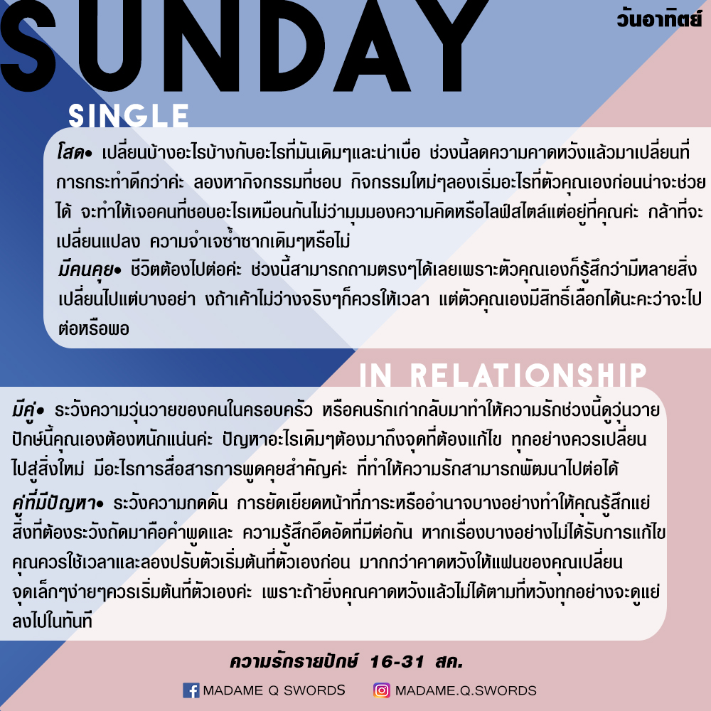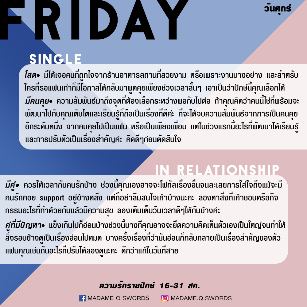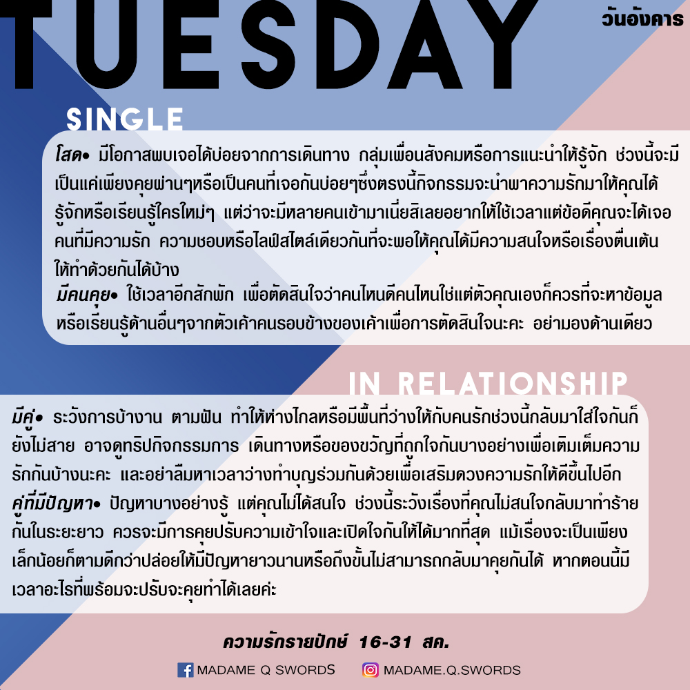 ดวงความรักรายปักษ์ 16-31 สค .by แพร madame q swords