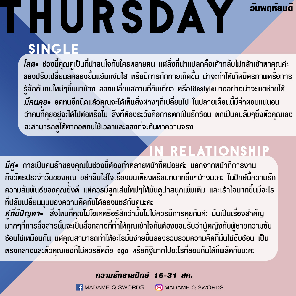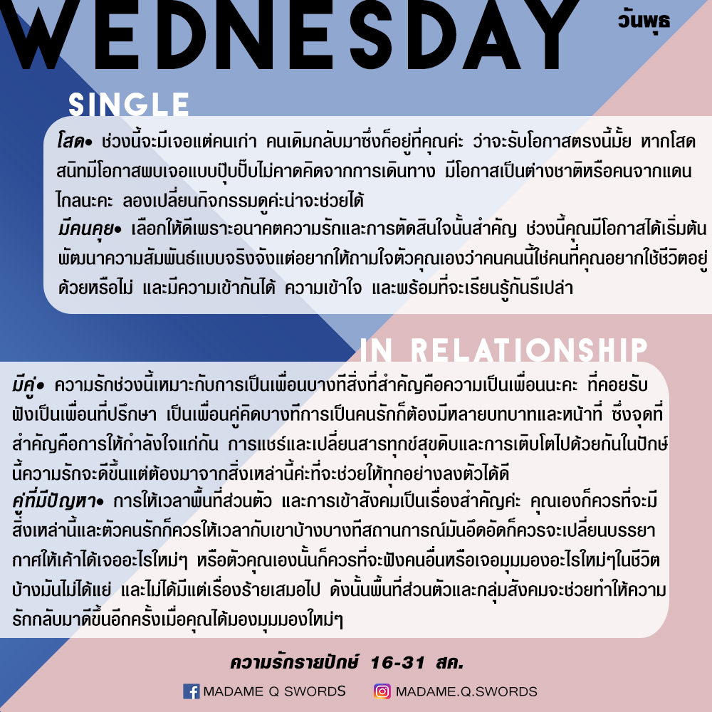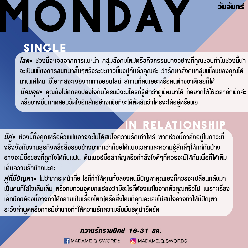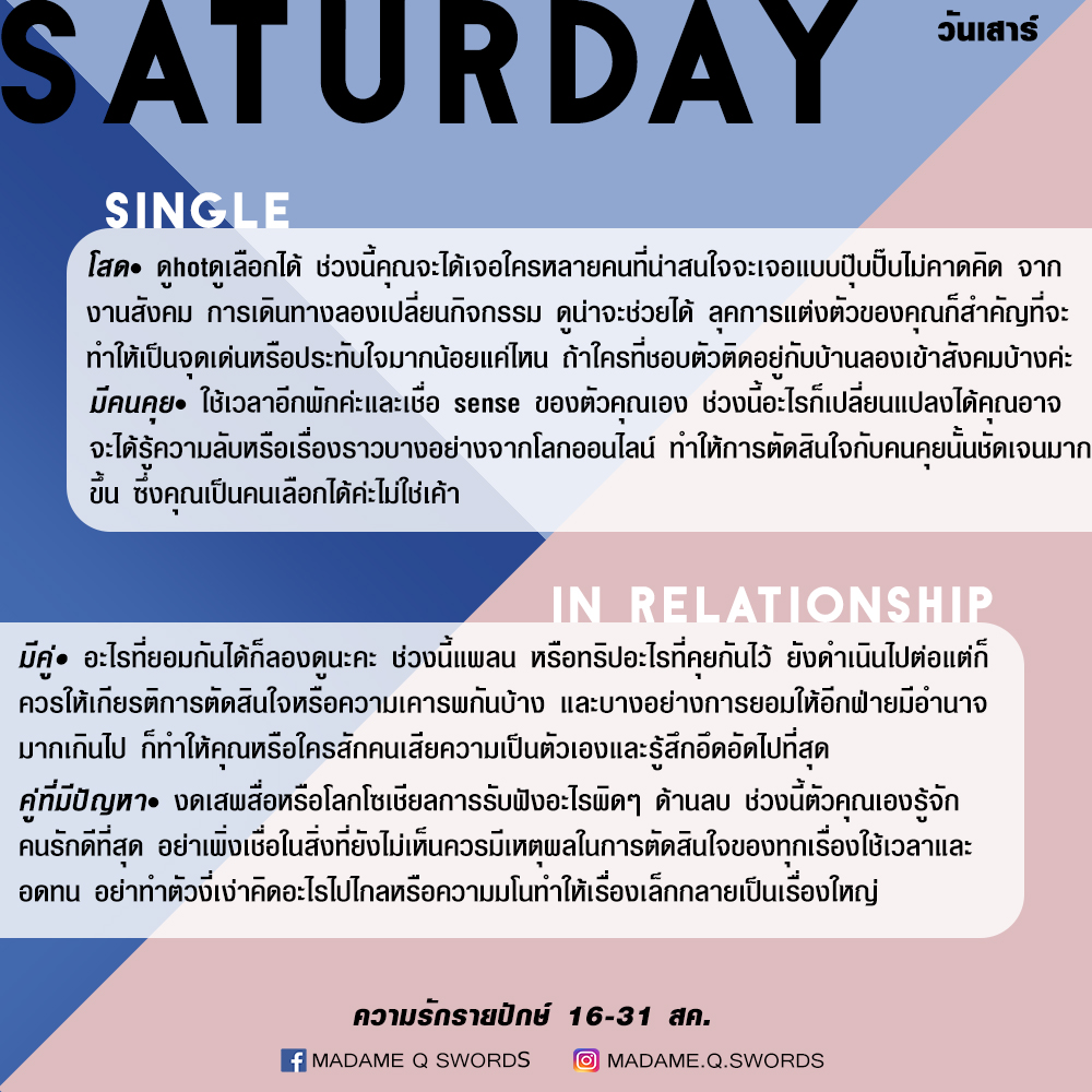 ดวงความรักรายปักษ์ 16-31 สค .by แพร madame q swords