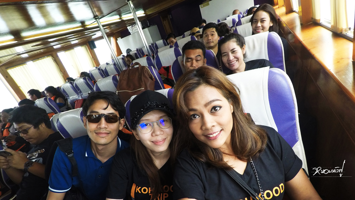 เราและผองเพื่อน นั่งกันที่ชั้นล่างของเรือ เป็นแอร์ แรกๆ ก็เย็นดี ซักพัก หนาวจ้า ฝนตกด้วย แอร์ด้วย หนาวไปใหญ่ ในวันนั้นฝนตกพรำๆ ตลอดเลย ตั้งแต่ขึ้นเรือไป พอถึงท่าเรืออ่าวสลัด นี่ตกมาหนักเลยทีนี้ T_T พอมาถึงแล้ว จะมีรถของทางรีสอร์ทมารออยู่แล้ว เราก็ฝ่าฝนไปขึ้นรถ แล้วก็ออกเดินทางไปรีสอร์ทกันเล้ยยยย