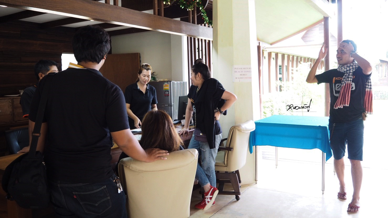พอถึงแล้ว ก็ได้รับ Welcome Drink กันเบาๆ แล้วก็คุยเรื่องแพ็คเกจกับทางรีสอร์ท เนื่องจากฝนตกทุกวัน ไม่สามารถออกเรือได้ เพราะฉะนั้น เราก็จะไม่ได้ดำน้ำกันเลยซักวันจ้า ทางรีสอร์ทก็จะลดค่าแพ็คเกจให้ จาก 7,700 เหลือ 6,900 ต่อคน