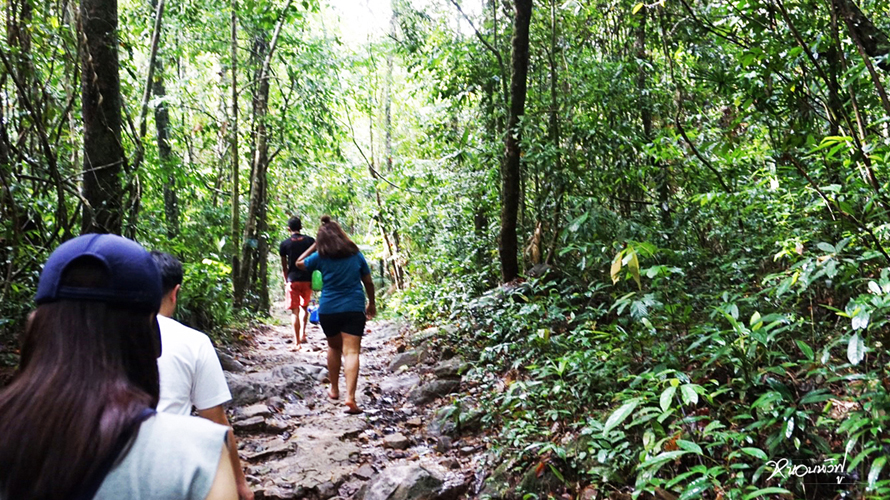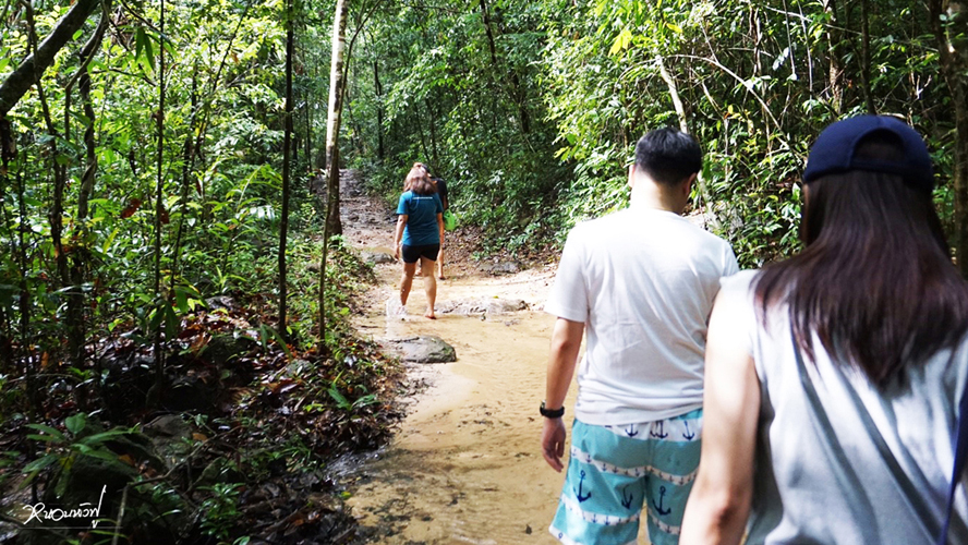 พอตกบ่าย พอจะมีแดด เลยต้องรีบไปน้ำตกกัน รถมาส่งถึงน้ำตกคลองเจ้าแล้ว ต้องเดินต่อไปอีกประมาณ 1 กม. ฝนตกปรอยๆ สภาพก็จะประมาณนี้จ้า ก็จะแฉะๆ หน่อยๆ