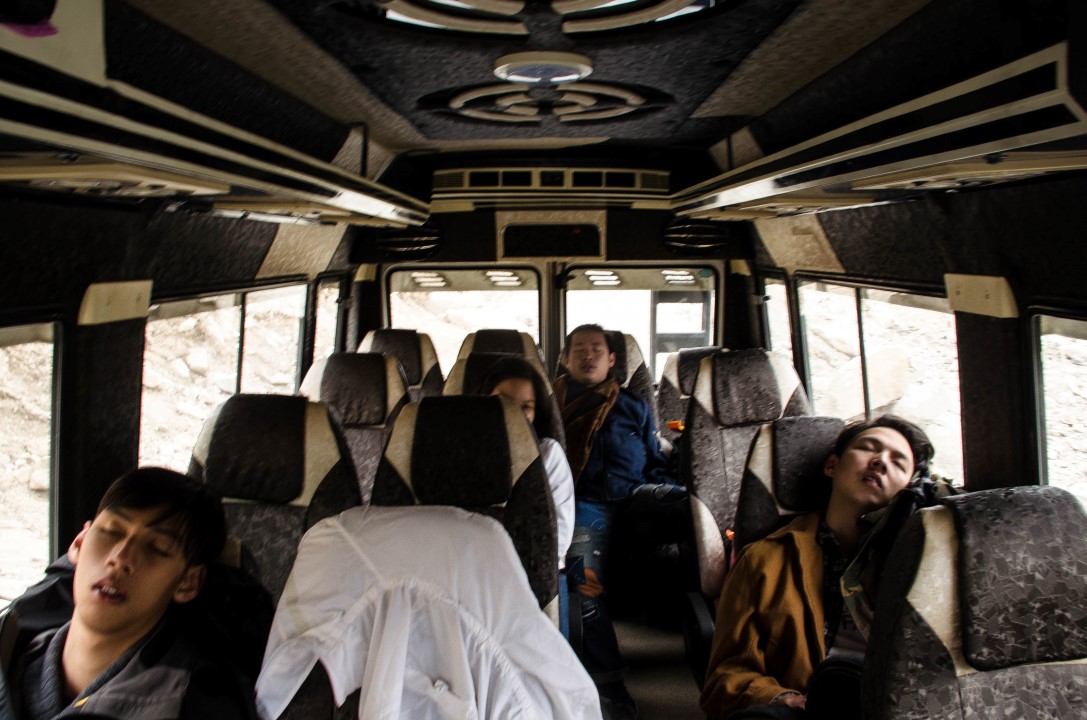 Traveller ข้อดีคือ รถกว้างมากครับ ด้วยทริปนี้พวกผมไปกันแค่ 5 คน แทบจะนอนคนละแถวได้เลย แถมค่าใช้จ่ายไม่ได้แพงมากกว่าอย่างที่นึกไว้ตอนแรกพวกผมเลยเลือกนั่งสบายครับ เพราะบางทีแดดส่องที่ฝั่งนึงก็เปลี่ยนไปนั่งอีกฝั่งนึงก็ได้ หรือตอนที่ขับผ่านเห็นวิวสวยๆก็ไม่ต้องเบียดแย่งกันถ่ายรูปครับ อีกอย่างนึงที่ติดมากับรถคันนี้คือมีถังอ๊อกซิเจนด้วยครับ ผมไม่ทราบมีทุกคันมั้ยแต่คัน Innova ที่นั่งวันแรกๆไม่มี ซึ่งถังนี้ช่วยเพื่อนผมที่ดันป่วย AMS ให้เดินทางต่อไหวได้พอดีเลยครับ ส่วนข้อเสียของรถคันนี้คือ มันเพดานสูงครับเวลาขับขึ้นเขาช่วงไปนอกเมืองนี่รถจะค่อนข้างโคลงเคลงครับ อาจจะหลับไม่ค่อยสะดวกเท่าไร่