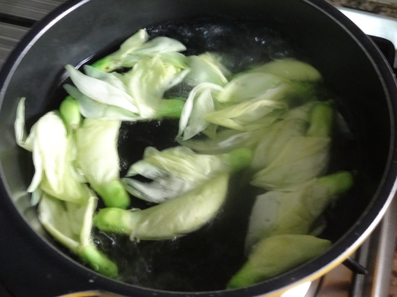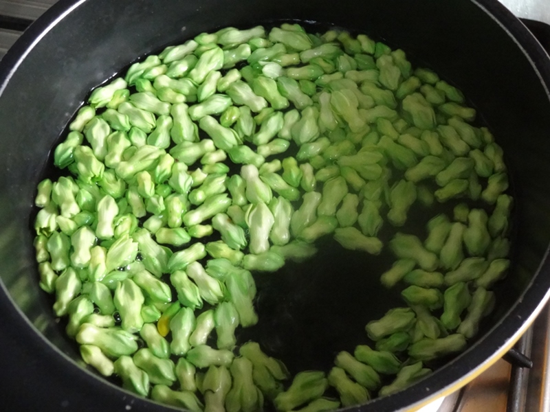 หมายเหตุ ควรลวกดอกไม้ทีละชนิด เพราะแต่ละอย่างสุกไม่พร้อมกัน