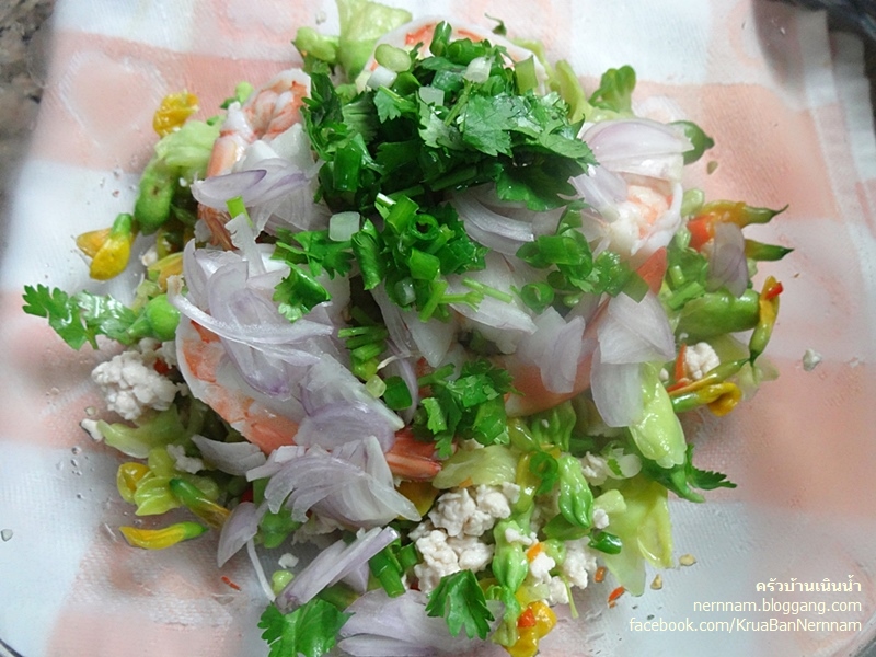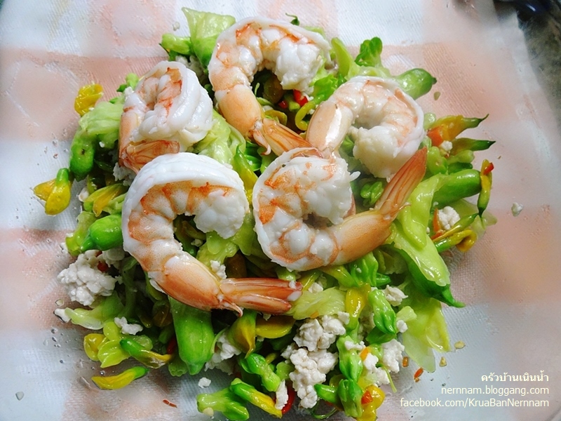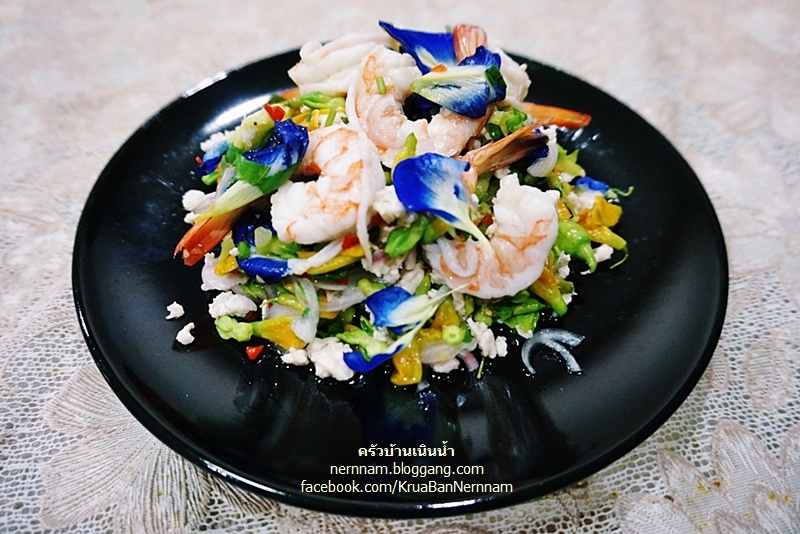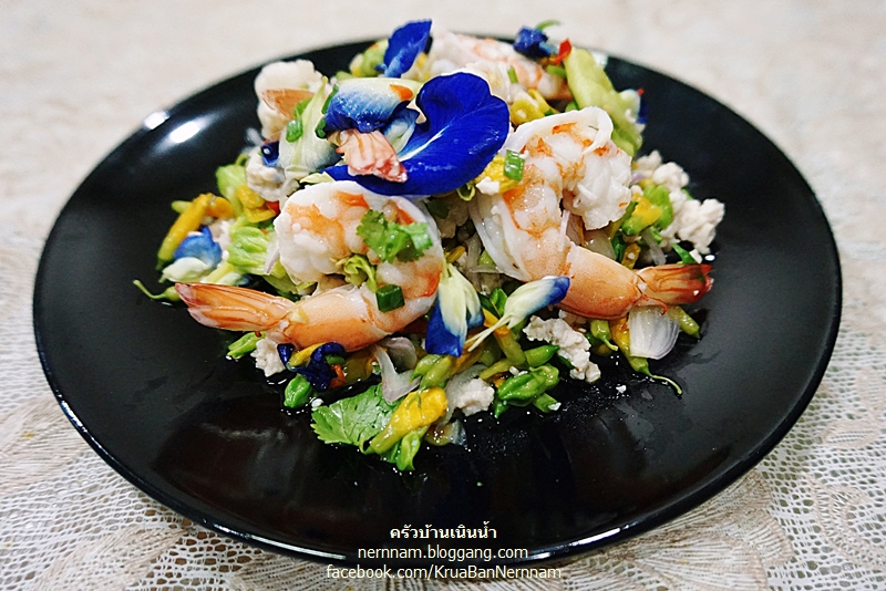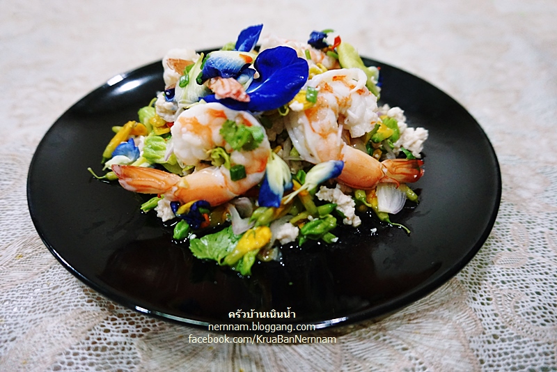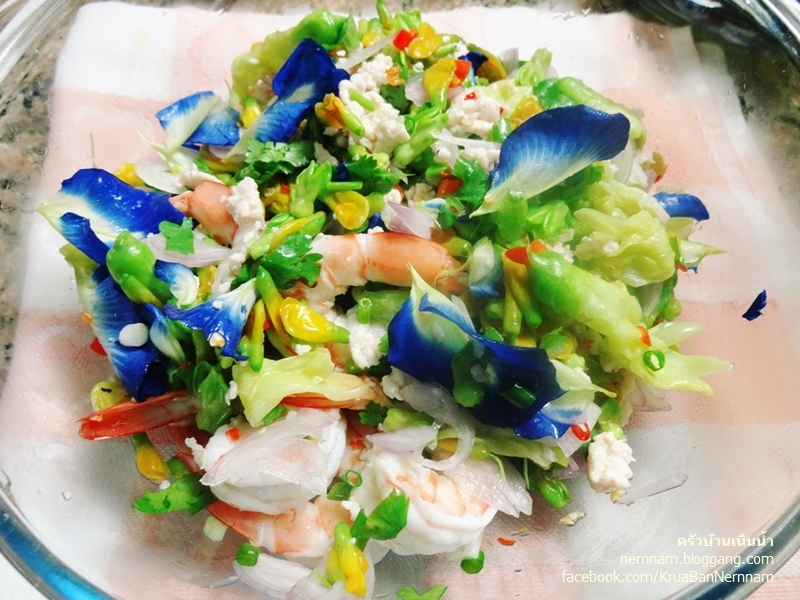 ++ ยำดอกไม้ไก่สับกุ้งสด ทำง่าย อร่อยด้วย สวยด้วย มีประโยชน์ด้วยค่ะ ++