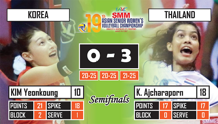 เกาหลีใต้ ที่เอาชนะไต้หวันมา 3 - 0 เซต
