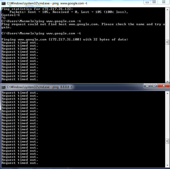 ใช้คำสั่งPing ไปยังGoogleและ8.8.8.8