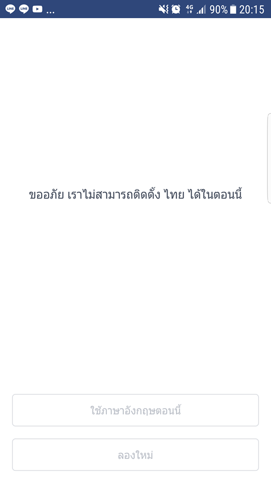 เข้า แอพfacebook ในมือถือSamSung ไม่ได้ ขึ้น(ขออภัยเราไม่สามารถติดตั้งภาษาไทยได้ในตอนนี้)