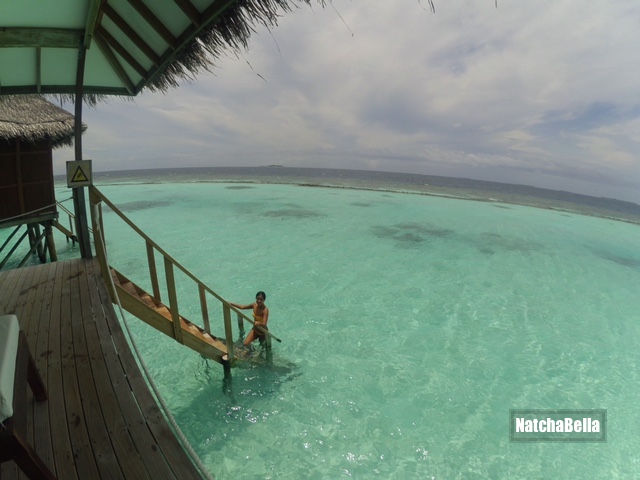 ในแแพ็คเกจห้องก็คือwater villa ขอเรียกว่าห้องนอนกับปลา เพราะปลาว่ายน้ำผ่านตลอดเวลา