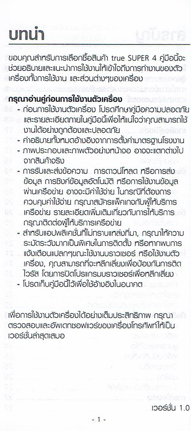 [CR] คู่มือใช้งานมือถือ True Super 4 ฉบับภาษาไทย เอามาฝาก สำหรับคนสายตาไม่ค่อยดี