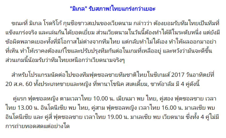 จากข่าวที่สหพันธ์ฟุตบอลเวียดนามคว้าตัวมิเกล โรดริโก้ อดีตโค๊ชทีมชาติไทยไปรับตำแหน่งเฮดโค้ชฟุตซอลทีมชาติเวียดนามโดยมีสัญญา 3 ปี งานแรกคือซีเกมส์ 2017 http://sport.sanook.com/506653/ ก่อนหน้านี้เห็นทา
