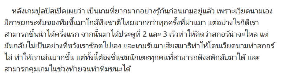 🇹🇭⚽ "โค้ช มิเกล โรดริโก้ พยายามใช้จิตวิทยากระตุ้นและปลุกใจนักเตะทุกคน และบอกถึงความตั้งใจของฝรั่งเศสว่าต้องการที่จะเจอกับเรา ซึ่งเห็นได้ชัดจากฟอร์มการเล่นและผลงานที่เขาแสดงออกมาในนัดที่แล้ว ฉะนั้