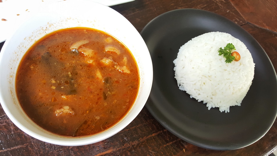 ส่วนเมนูอาหารค่อนข้างน้อยนะคะ เน้นอาหารจานเดียวซะส่วนใหญ่ รสชาติกลางๆ เฟิร์นสั่งหมูทอดกระเทียม เพื่อนๆ สั่งข้าวไข่เจียว ผัดไทยกุ้ง แกงหมูชะมวง