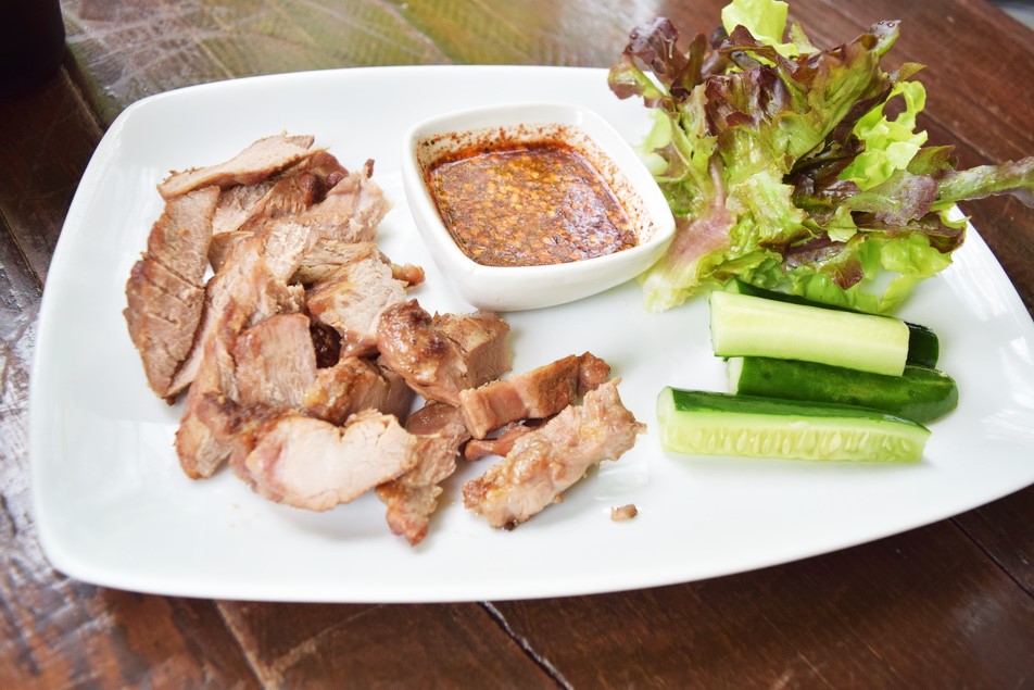 ส่วนจานกลางสั่งคอหมูย่าง ที่รู้สึกเฉยๆ (คอหมูย่างร้านส้มตำอร่อยกว่า) กับโรตีกุ้งกรอบที่เมนูนี้เพื่อนฝรั่งทานได้เพลินๆ รสชาติโอเคค่ะ ราคาอาหารก็ไม่แพงมาก คือถ้าจ่ายกับค่าสถานที่และบรรยากาศถือว่าโอเค แต่แนะนำให้กินกาแฟ เวิร์กสุด