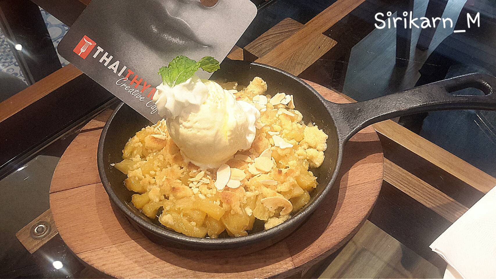 เป็นของหวานที่ยกเสริฟ มาในกะทะร้อน ในรูปอาจดูเล็กนะคะ เชื่อไหมคะ 4 คน กินไม่หมด!!