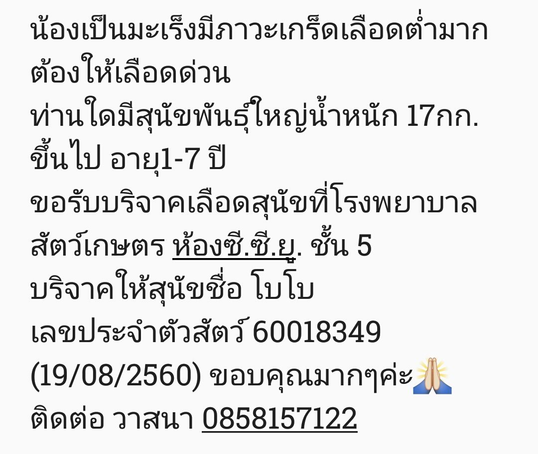 🙏ขอความช่วยเหลือเรื่องขนส่ง สุนัข 2 ตัวพร้อมลูกอ่อนรวม 14 ตัว ค่ะ จากหาดใหญ่ไปกรุงเทพค่ะ🙏