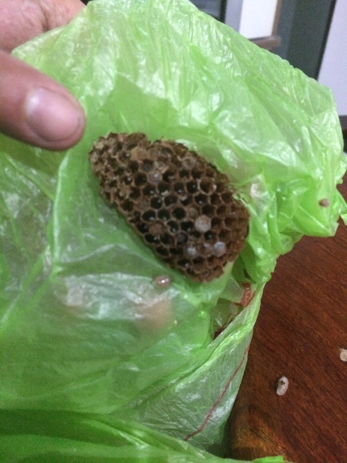 อันนี้คือตัวอะไรคะ คือมาทำรังอยู่ตรงเสาบ้านเรา จำเป็นต้องจำกัดไหมคะ กลัวมาต่อยคนในบ้าน