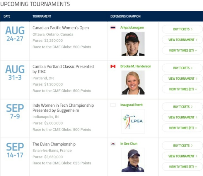 โดยจะเป็นรายการ CANADIAN PACIFIC WOMEN'S OPEN ที่ประเทศแคนาดา วันที่ 24-27 สค.แชมป์เก่าก็คือ เอรียา ของเราไงล่ะครับ