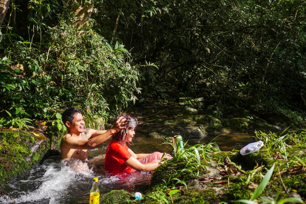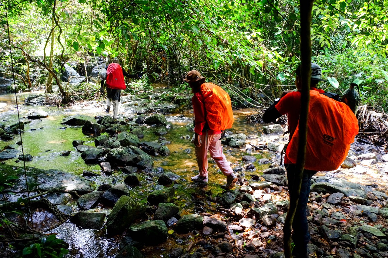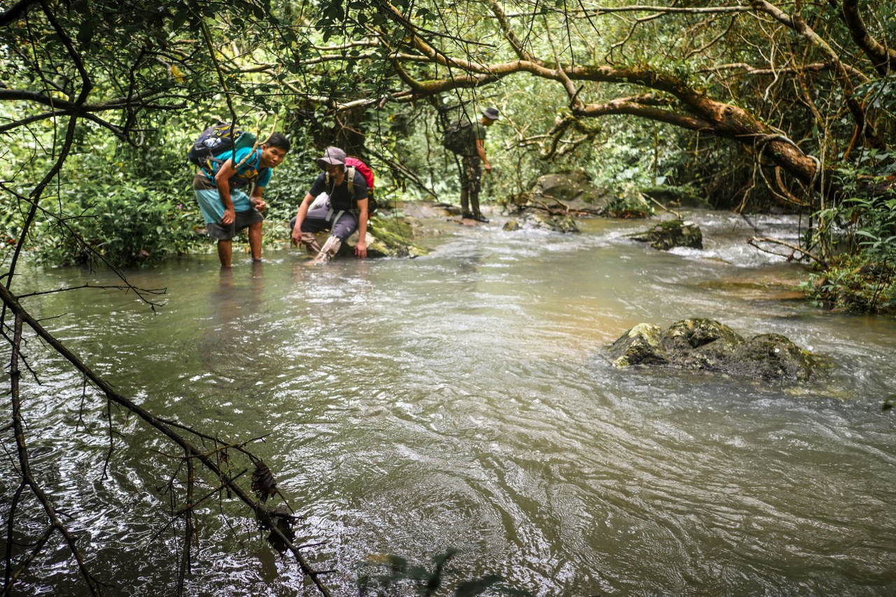 ข้ามน้ำไปมาตลอดเส้นทาง พอตัวจะแห้งๆ ก็ต้องข้ามน้ำตกอีกแล้วเป็นแบบนี้ไม่ต่ำกว่า 10 ครั้งจนกว่าจะถึงแคมป์