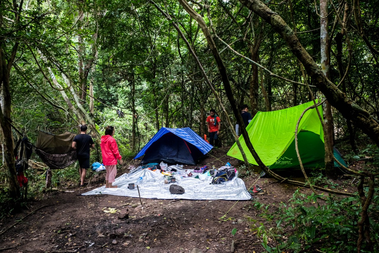 มาถึง จุด กางเต้น เที่ยงพอดี เริ่มกางเต้น ทำอาหารกินข้าวกลางวัน