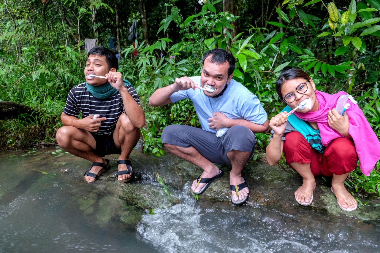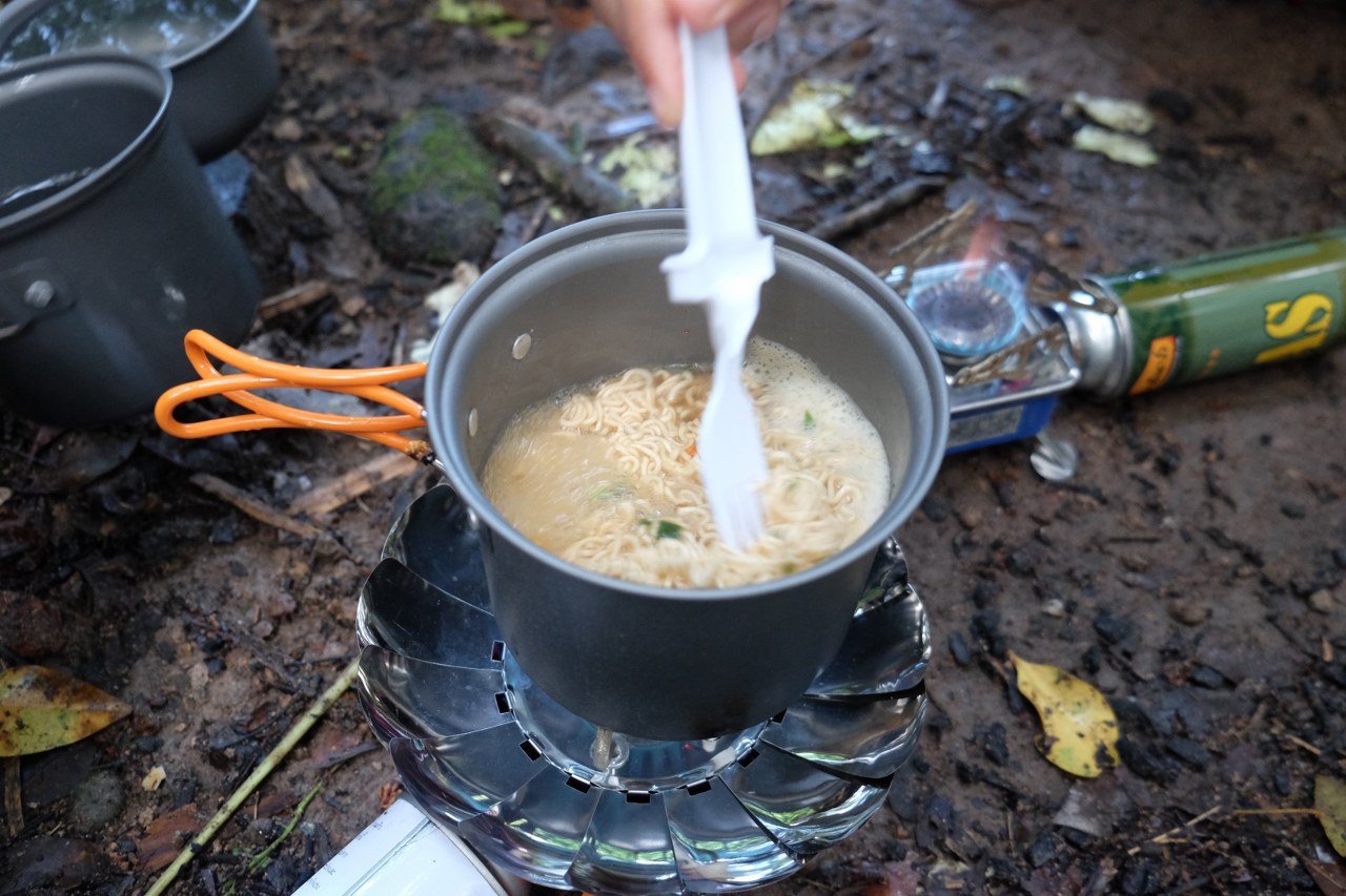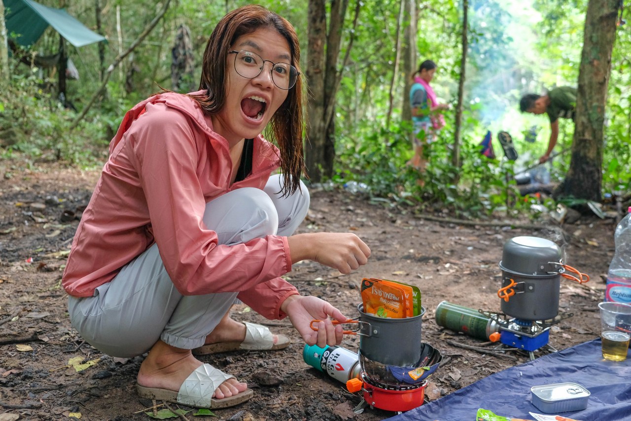 ถึงแคมป์ก็อาบน้ำให้สบายใจแล้ว ก่อไฟต้มน้ำ หุงข้าว ทำกับข้าว