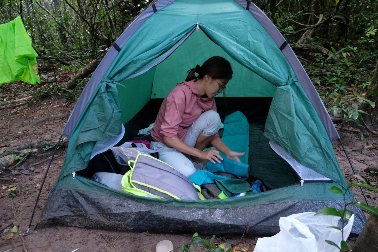 ...ได้เวลาฟักถุงนอนออกมา รูดซิบ แล้วนอนเปิดพัดลมอย่างสบายใจ...