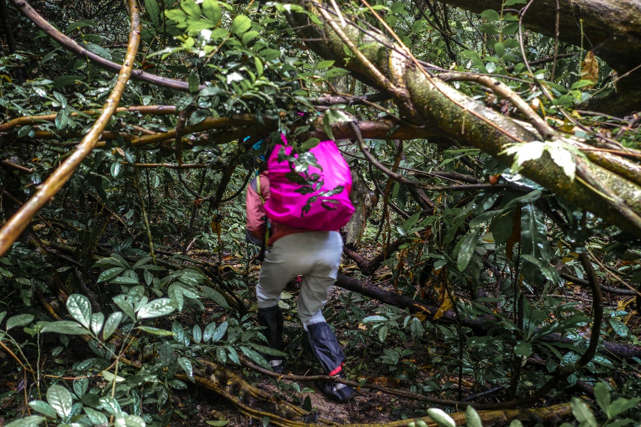 ระหว่างทางแคบหญ้ารก ต้นไม้หักโค่น เถาวันระโยงระราง