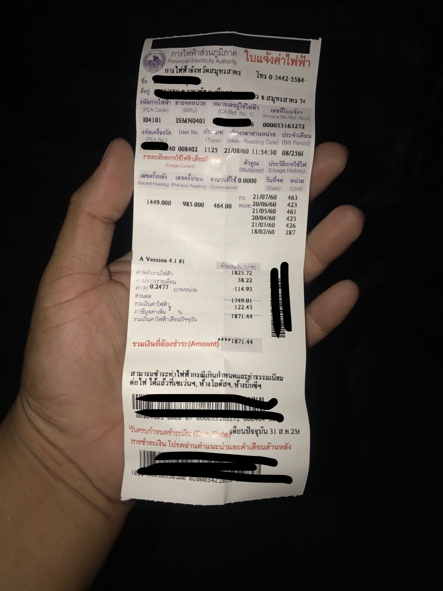 หลังจากที่แม่ชอบบนว่า "อยู่บ้านไม่กี่คน ทำไมค่าไฟแพงจัง ช่วยกันประหยัดหน่อย" ผมก็พยายามประหยัดสุด ไม่อยู่บ้านเอา สวิชต์ไฟหลักปิด ดับหมดบ้าน แต่ค่าไฟฟ้า ยังอยู่ในระดับเดิม มาเกือบหลายเดือนแล้ว จนมาวันนี้ได้เห็น ใบแจ้งค่าใช้ไฟฟ้า เลยลองเอามาดู แค่พบข้อสงสัยมากมาย