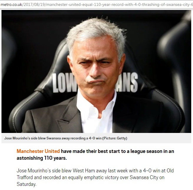 ฟอร์มเปิดฤดูกาลอันสุดยอดของแมนยูในรอบ 110 ปี
