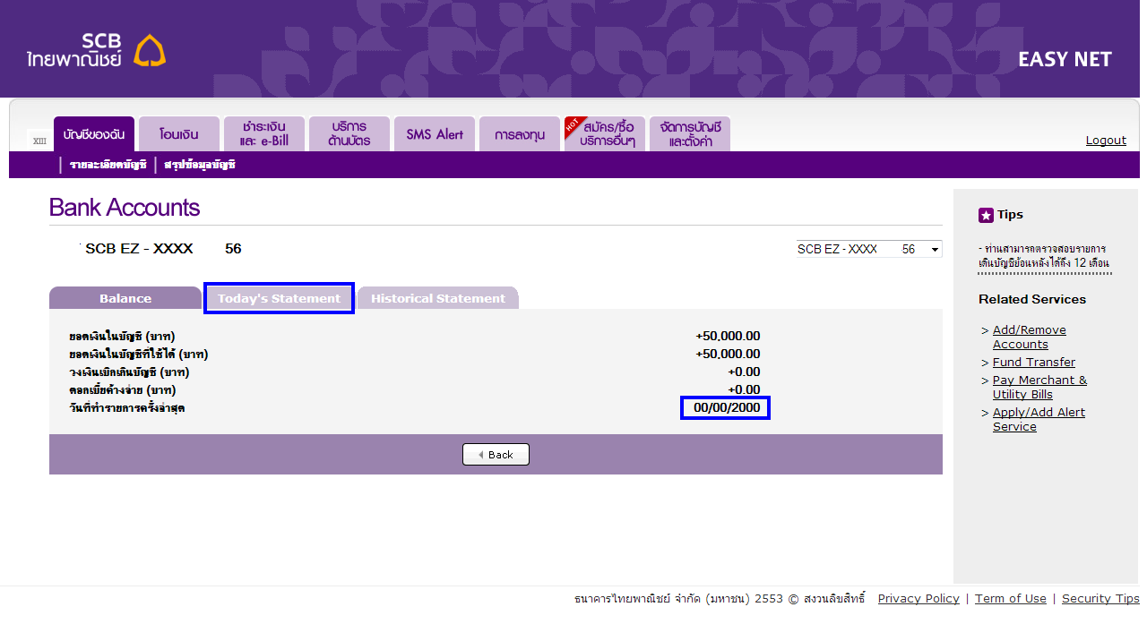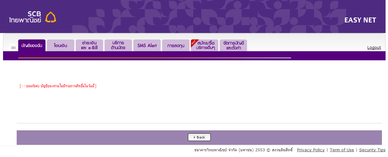 บัญชี scb ez saving รายการของวันนี้ไม่แสดงข้อมูล