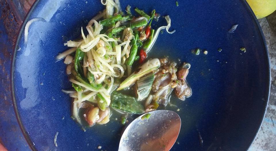 ส้มตำปู ปลาร้า อาหารโปรดของเเม่ วัตถุดิบในจานเกือบทั้งหมด เป็นของที่เด็ดสดๆมาจากต้น มันจะฟินๆหน่อย เเบบสดมากอ่ะ
