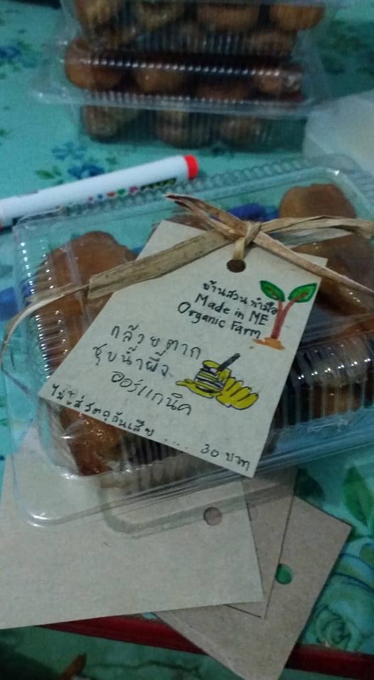 เเม่บอกว่า จะนั่งเขียนป้าย ตัดกระดาษทำไมให้เสียเวลา ทำงานเสร็จกลับมาถึงห้องเราก็นั่งตัดกระดาษ เขียนเองกับมือทุกอัน เอาเชือกกล้วยที่เก็บมาจากบ้านมามัด ให้ product ของเราดูมี story มากขึ้น จากเคยขายกล้วยน้ำหว้าได้หวีละ 10-20 บาท ก็เอามาตาก 1 หวีได้ 2 กล่อง ขายกล่อง ละ 30 ก็เพิ่มมูลค่าได้ดีเลยทีเดียว