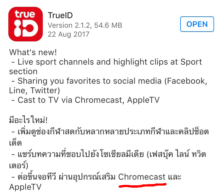 True ID อัพเดทใหม่แต่เชื่อม Chromecast ไม่ได้
