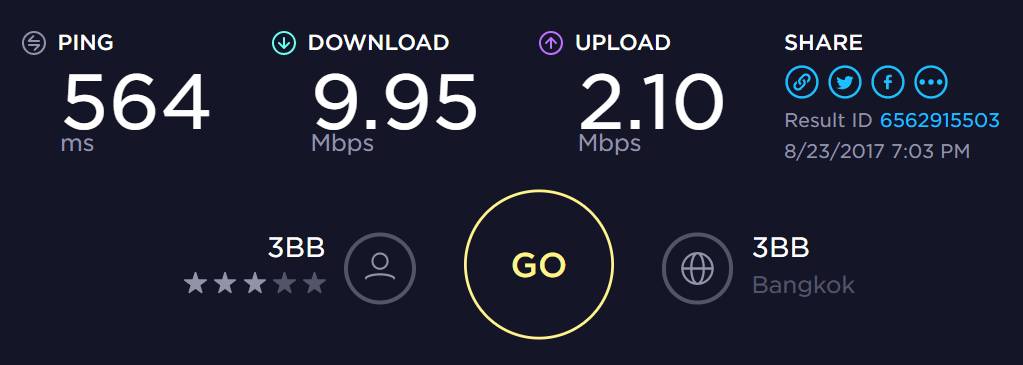 ผมเป็นลูกค้าของ 3BB มาประมาณ 4 ปีแล้วครับ ณ ตอนนี้ใช้ 100/30 Mbps ราคารวม vat. ประมาณ 749 บาทต่อเดือน พอดีวันนี้ มีเซลล์ ของเน็ตบ้านของ AIS มาเสนอ 100/50 Mbps ซึ่งราคาที่เสนอมาก็น่าตกใจ เพราะลดกันไปเก