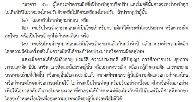 รอการลงโทษและรอการกำหนดโทษ ประมวลกฎหมายอาญา มาตรา 56 ใหม่