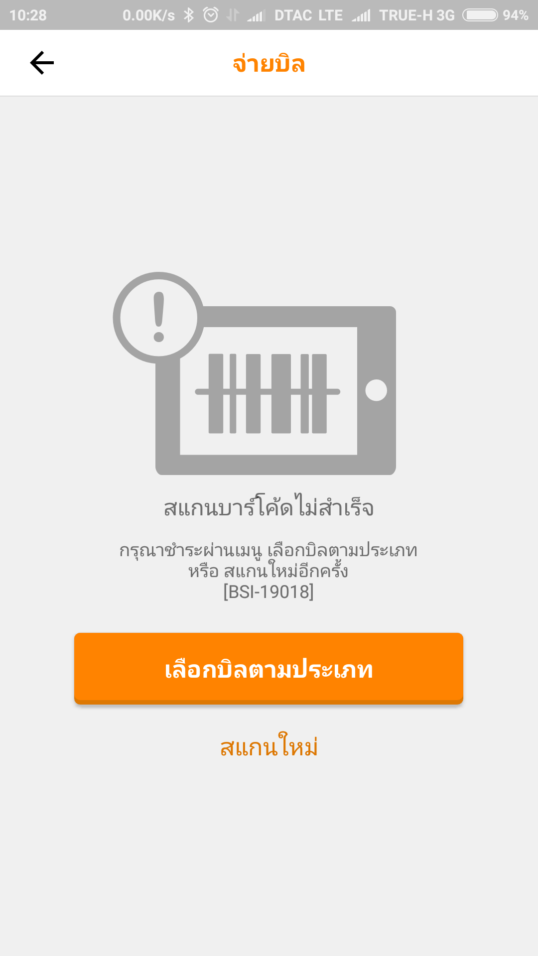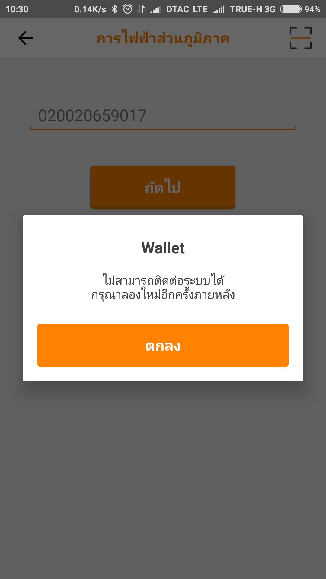 True Wallet จ่ายบิลไม่ได้ครับ