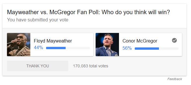 มาดูคนส่วนใหญ่คิดว่าไฟท์หยุดโลกระหว่าง Mayweather vs. McGregor ใครจะชนะ