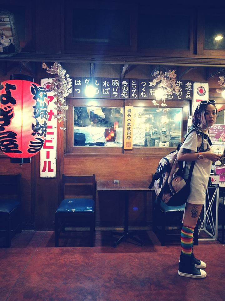 ยืนหน้าโคมไฟใหญ่ ให้แสงส่องที่หน้านิดนึง อะไรที่มีไฟและตัวอักษรญี่ปุ่นใหญ่ๆนี่เป็นพร๊อพอย่างดีเลยว่ามั้ยครับ ^_^