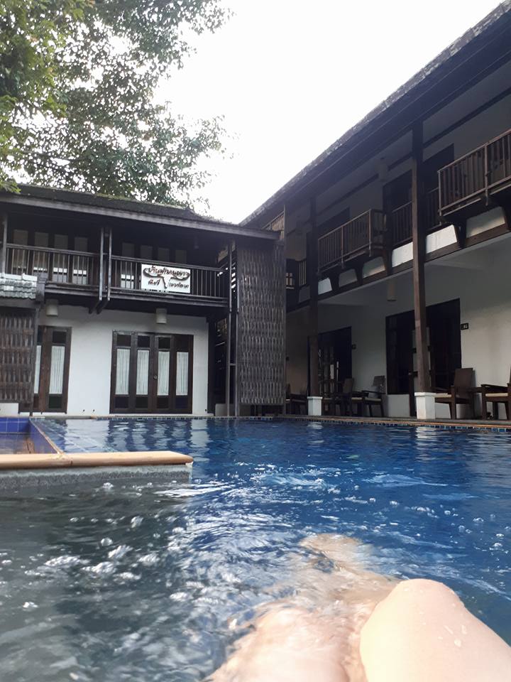 (ป่ายเขียนว่า "บ้านพักคนชรา" ชอบๆ สระน้ำสะอาด ไม่เหม็นคลอรีน แถมมีมุมติดตั้งหัวพ่นน้ำให้นั่งชิวๆด้วย สบายยยย)